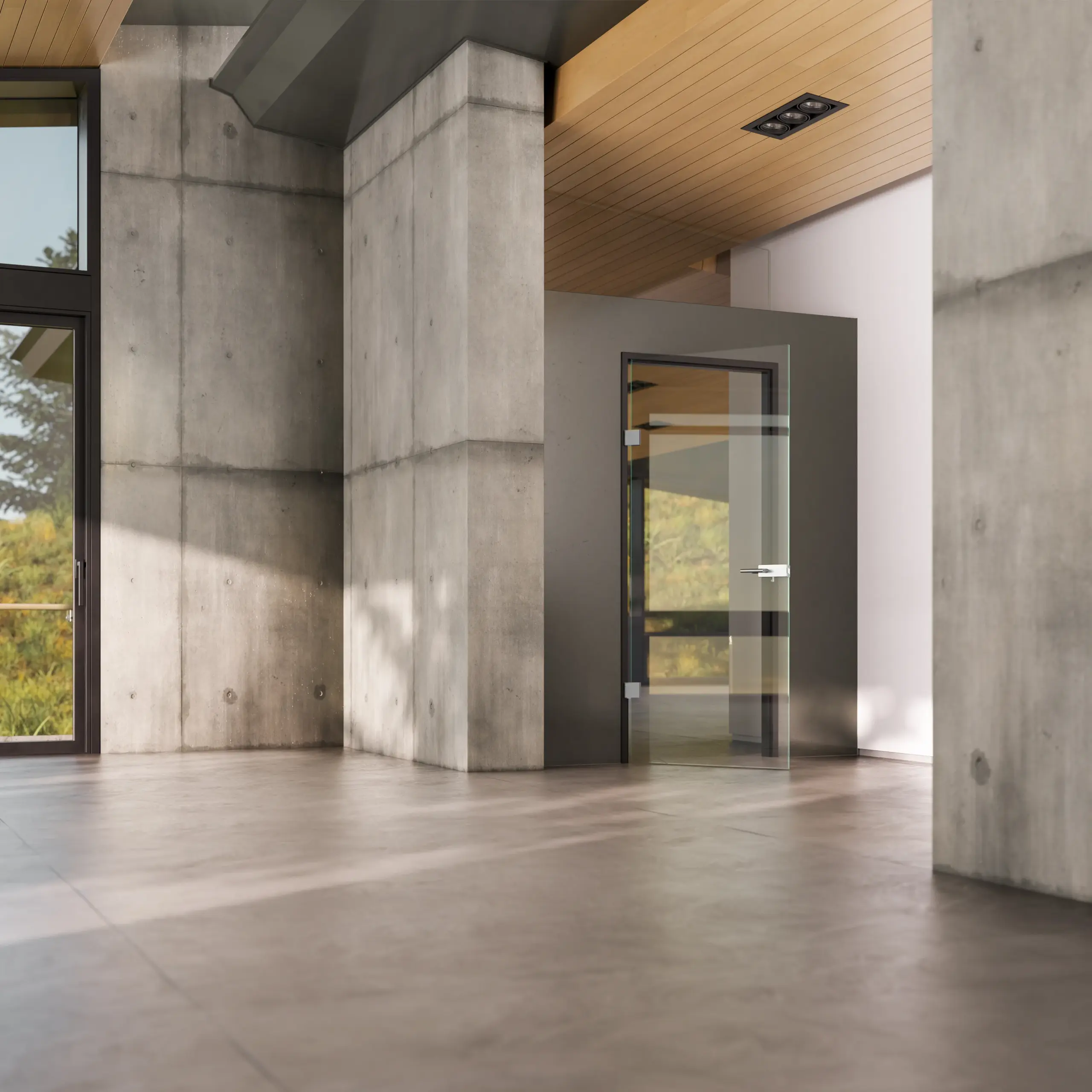 Jejich výhodou je jednoduchá forma, která nechává vyniknout samotné sklo a architekturu prostoru. Dveře mohou fungovat samostatně nebo jako součást skleněných stěn a vstupních portálů.