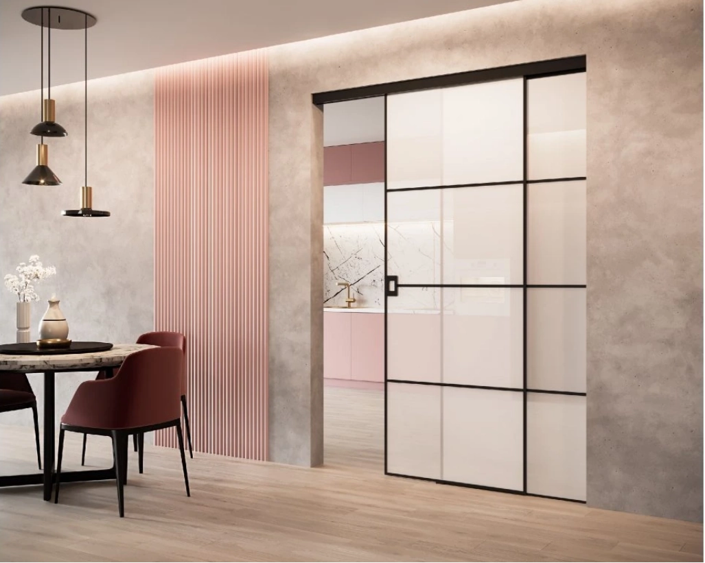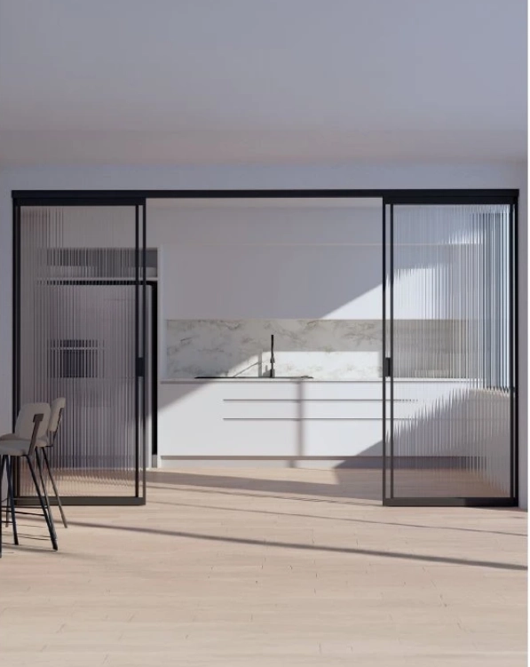 Rámové posuvné dveře a stěny jsou ideální pro byty, rodinné domy i komerční prostory. Umožňují oddělit místnosti bez ztráty světla a vizuálního propojení.